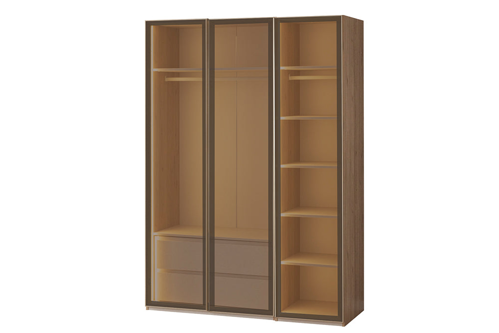 Dolap içinde 1. kalite suntalam kullanılmıştır. Füme reflekte camlı alüminyum çerçeveli kapaklar mevcuttur. |