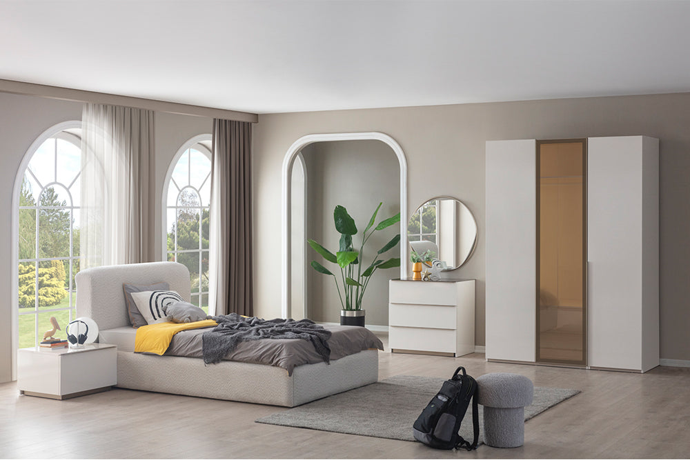 Ürün/Takım İçeriği 1 Adet 3 Kapılı Dolap , 1 Adet Karyola , 1 Adet Karyola Başlığı , 1 Adet Çalışma Masası Alt, 1 Adet Komodin