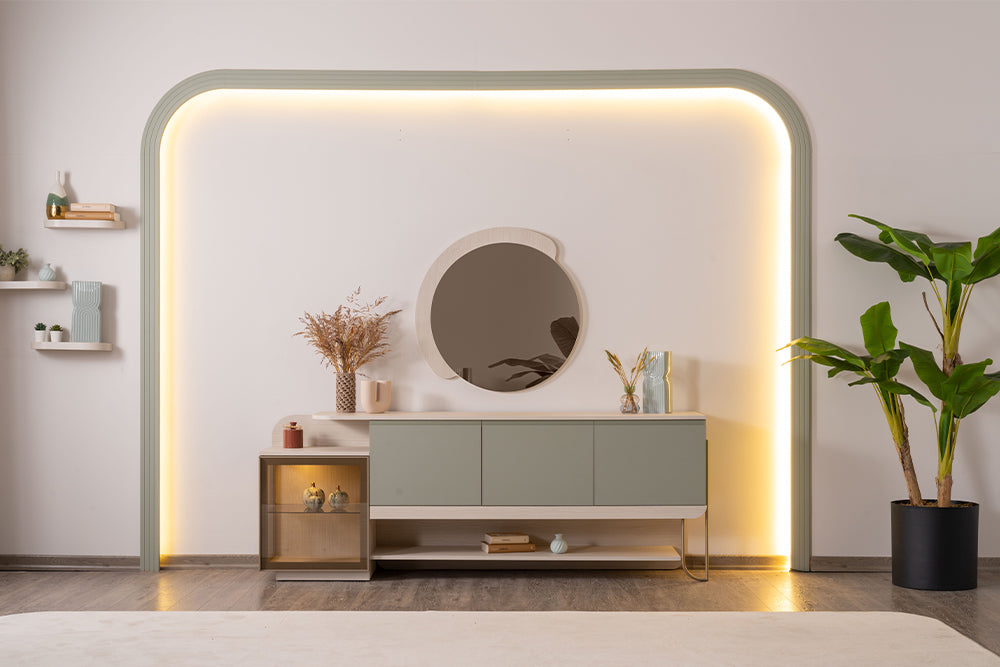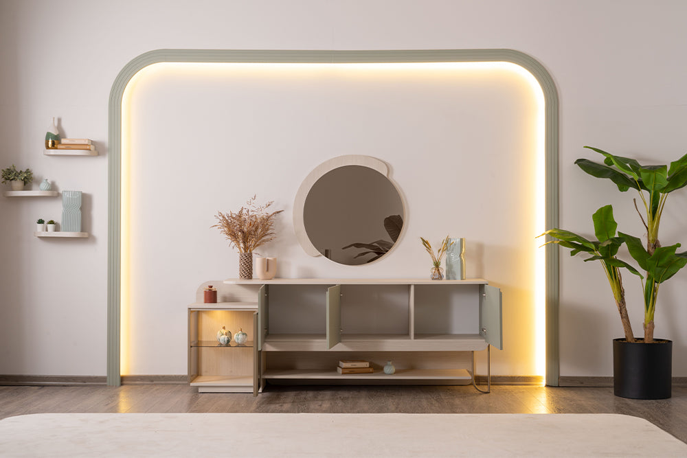 Yonga levha malzemeden üretilmiştir.  E1 antikanserojen malzeme kullanılarak üretilen bu seri, çevre dostu ve sağlığa zararsız özellikleriyle öne çıkar.  Konsol kapaklarında kullanılan stoplu menteşeler ise hem sessiz hem de güvenli bir kullanım sağlayarak, kalite ve işlevselliği bir araya getirir.