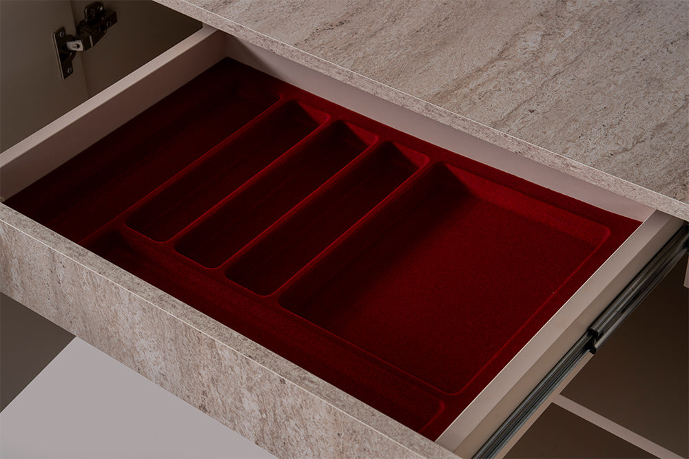 4 adet kapak vardır. Dolap içi kaşıklık çekmecesi mevcuttur. |