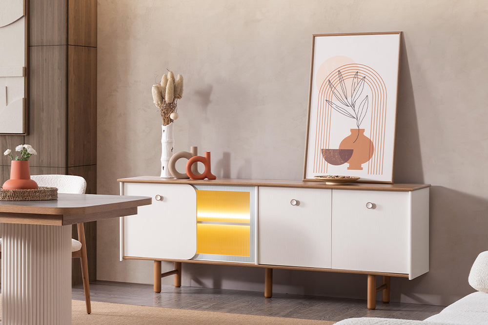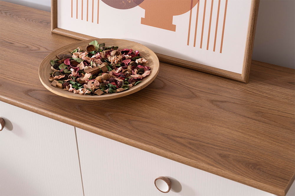 Yonga levha malzemeden üretilmiştir. E1 antikanserojen malzeme kullanılarak üretilen bu seri, çevre dostu ve sağlığa zararsız özellikleriyle öne çıkar. Konsol kapaklarında kullanılan stoplu menteşeler ise hem sessiz hem de güvenli bir kullanım sağlayarak, kalite ve işlevselliği bir araya getirir.