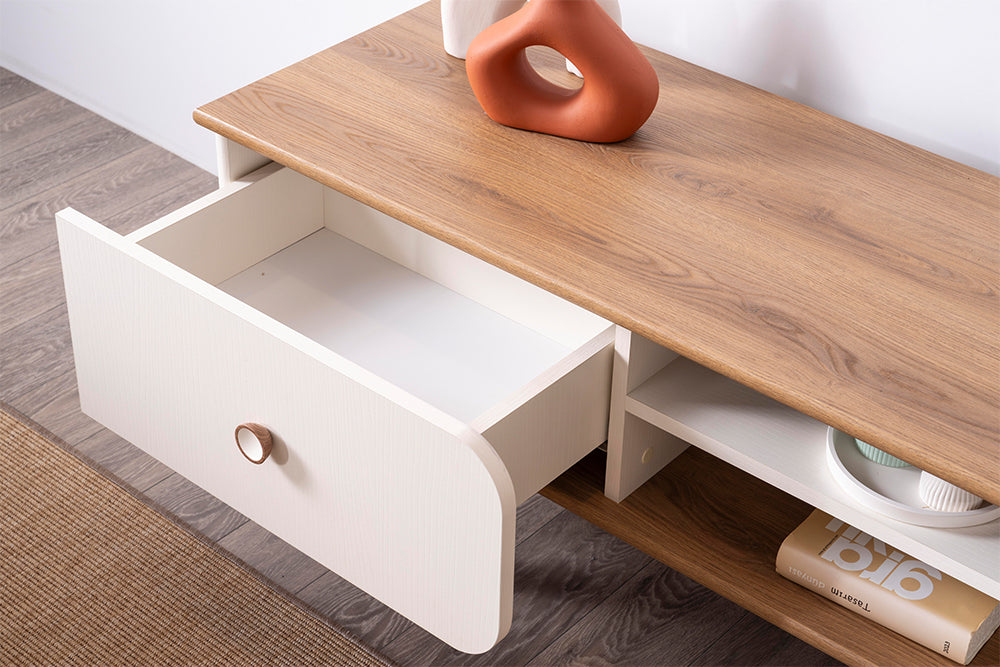 Tv sehpasında 3 adet çekmece, 2 adet raf mevcuttur.