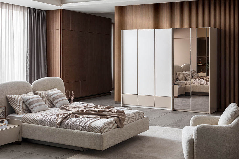 | Ürün/Takım İçeriği | 1 Adet 6 Kapaklı Dolap , 1 Adet Bazalı Karyola ve Başlığı, 1 Adet Şifonyer ve Aynası, 2 Adet Komodin |