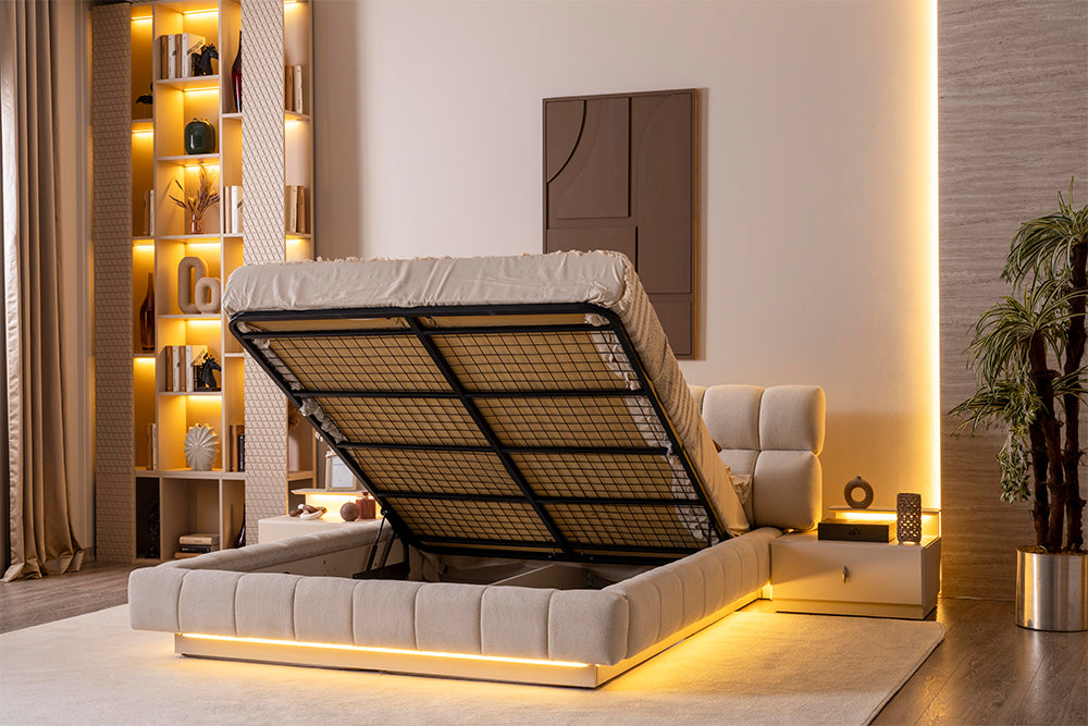 Yonga levha malzemeden üretilmiştir. 1. sınıf kumaş döşeme ile üretilmiştir.